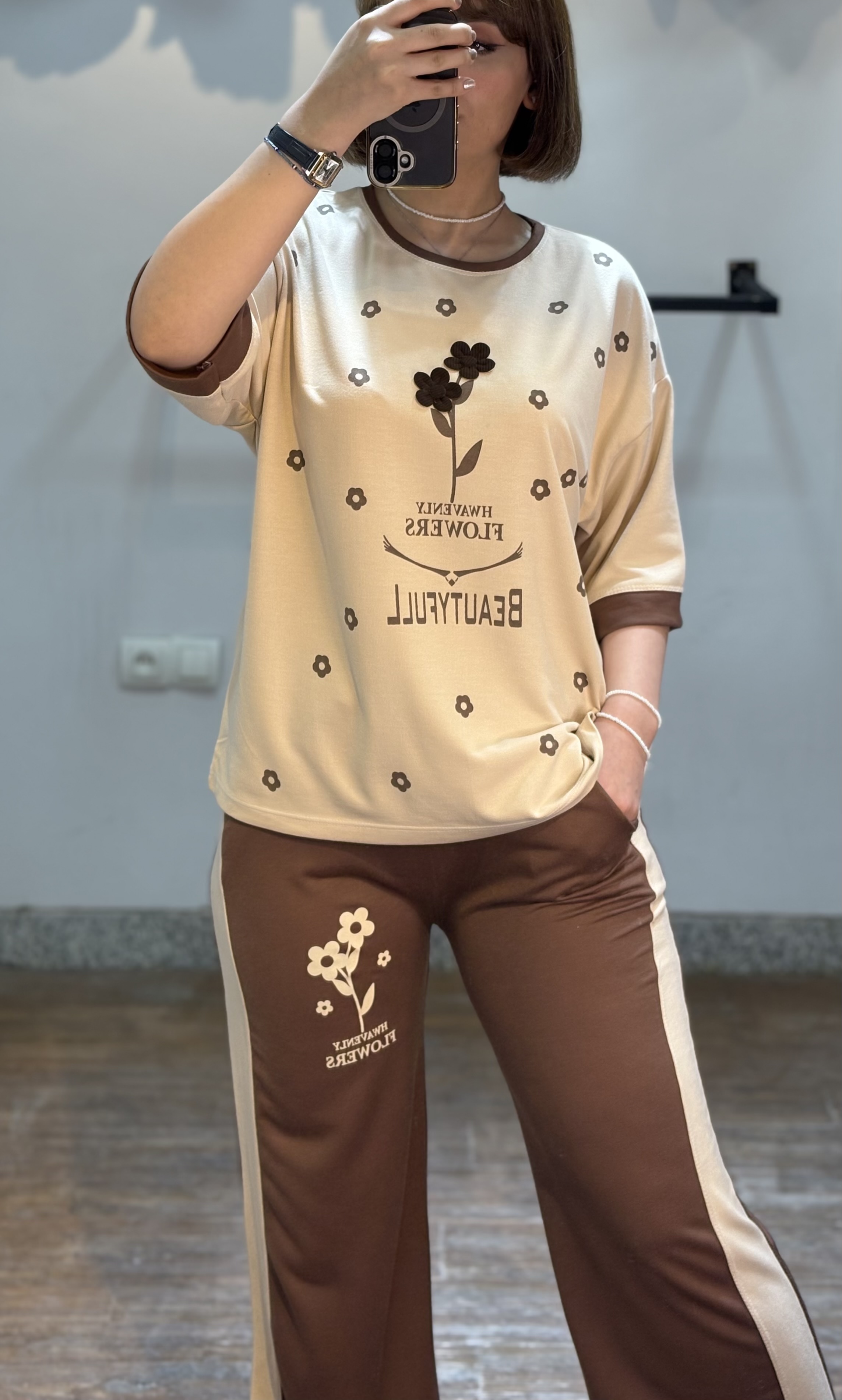 • مدل: ست تیشرت و شلوار طرح flower