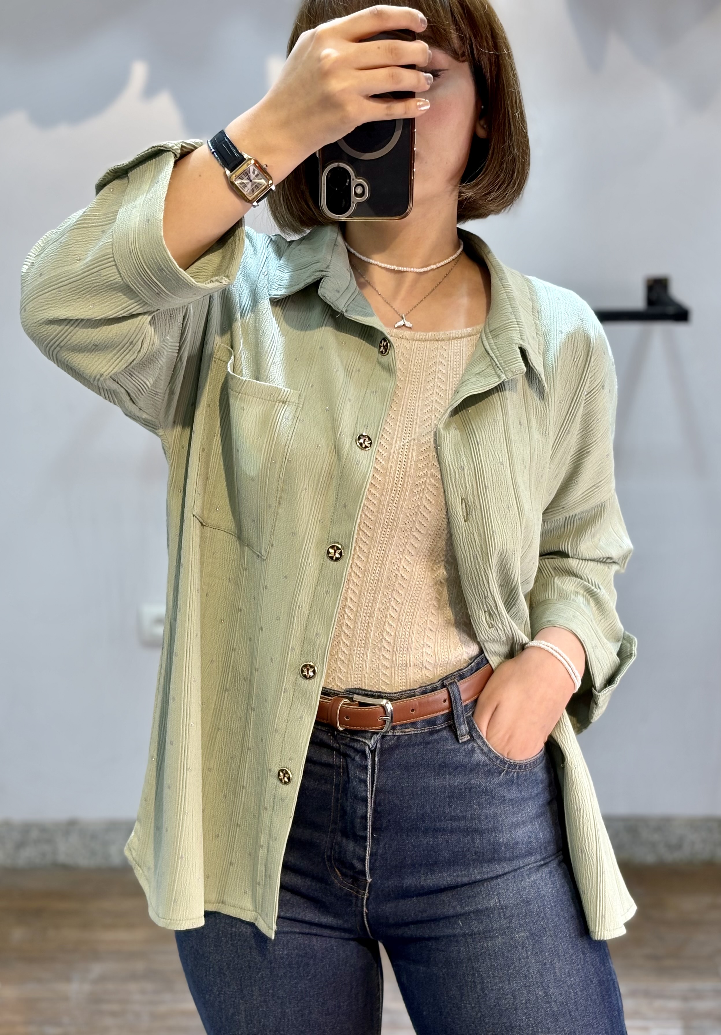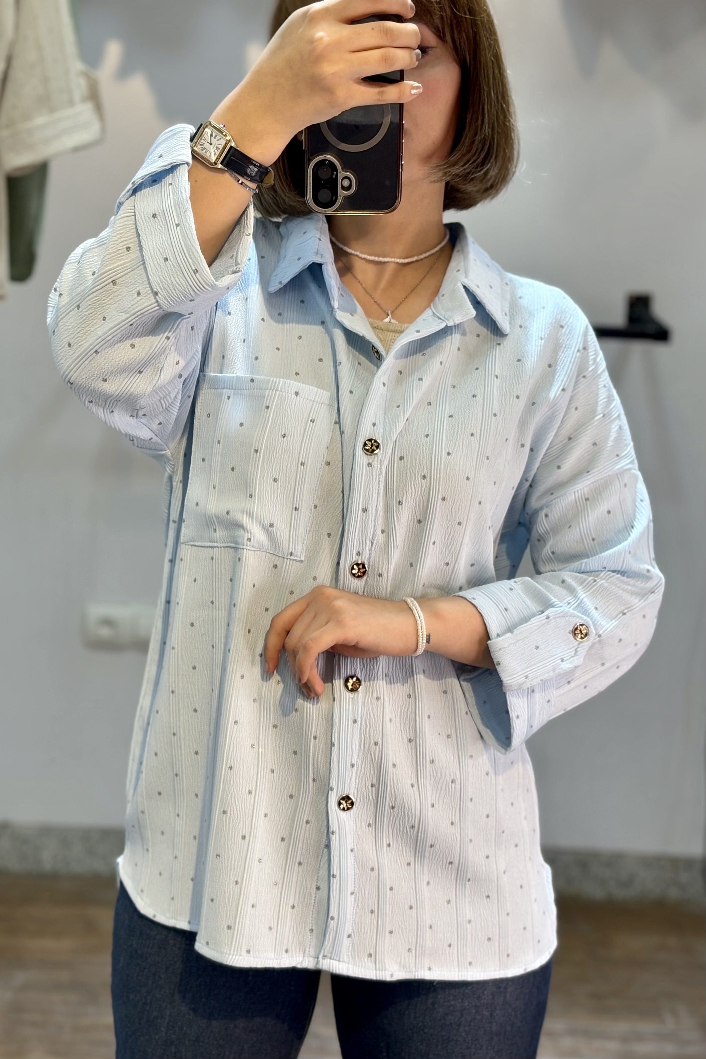 شومیز شاین دار ( طرح نگین دار ) یه شومیز کاربردی که خیلی راحت با شلوار جین و پارچه ای استایل میشه 🤌🏾
