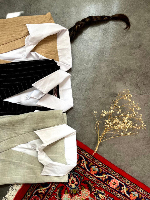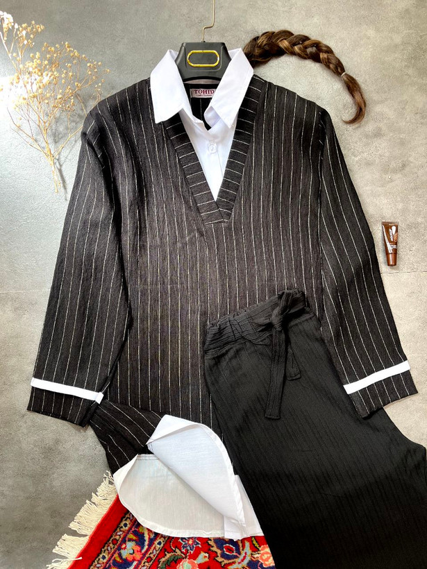 شومیز دیپلمات زنانه و دخترانه | فری سایز | طرح راه راه | یقه مردانه