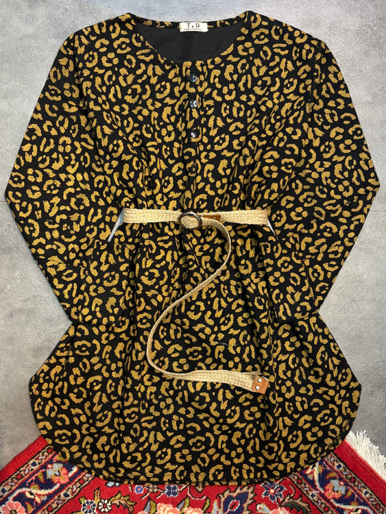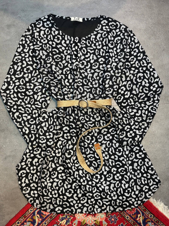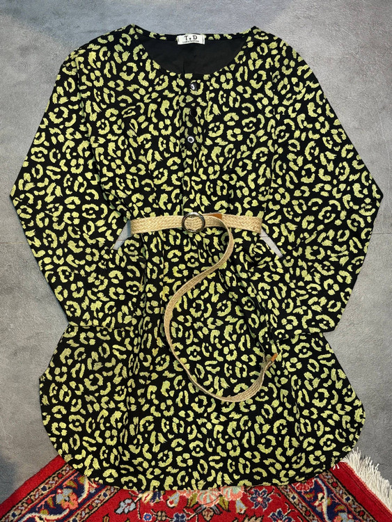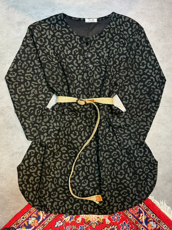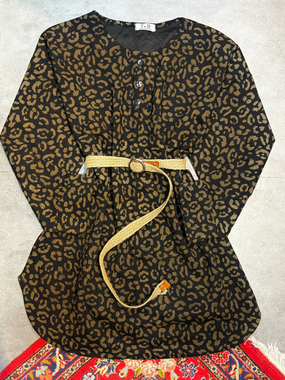 تونیک زنانه طرح پلنگی | کمربند دار | جنس فکورا کبریتی | فری سایز