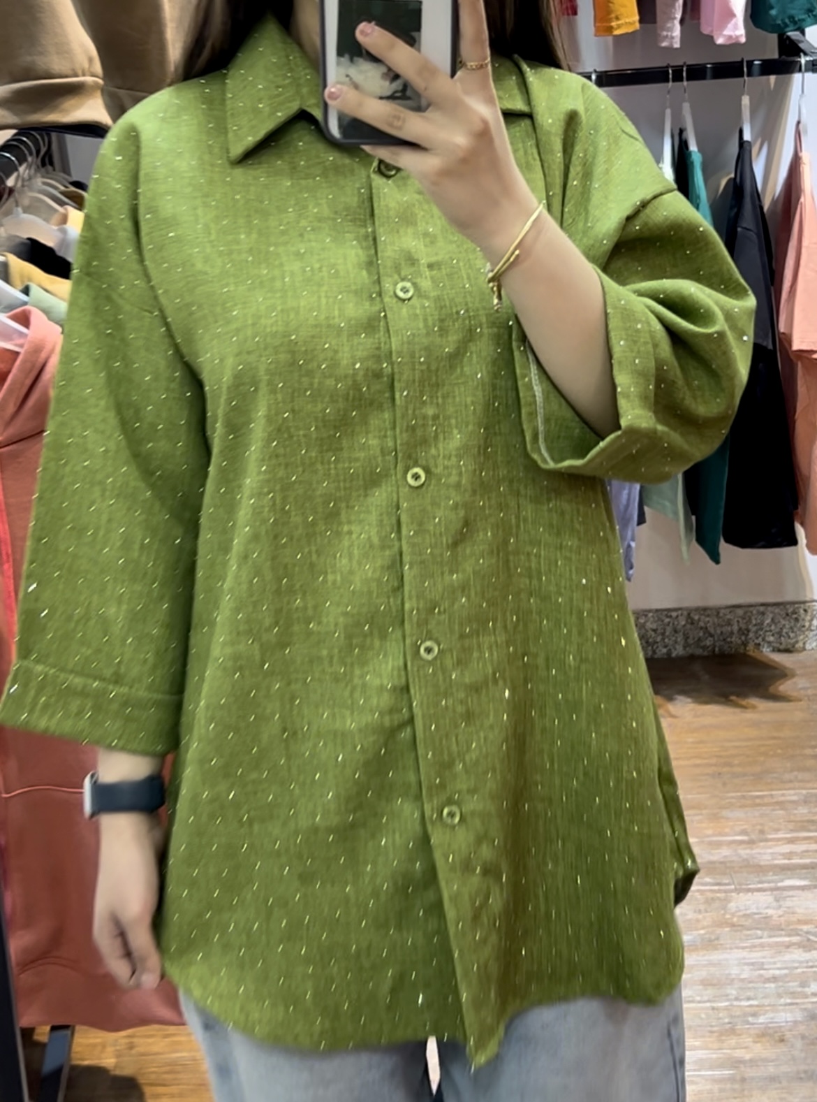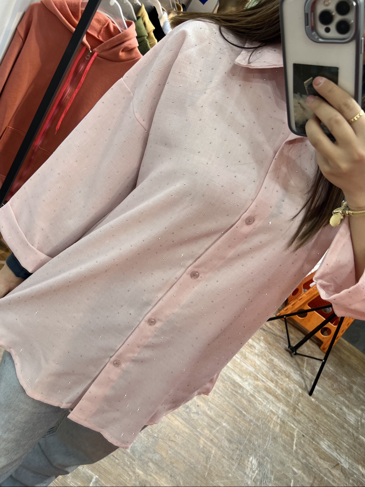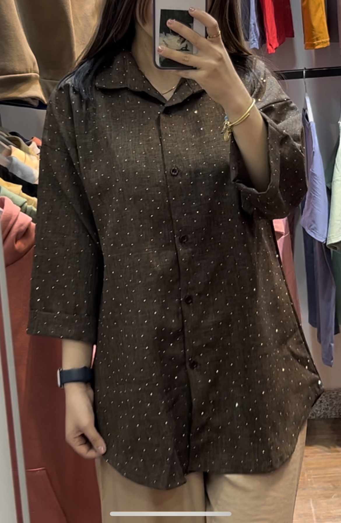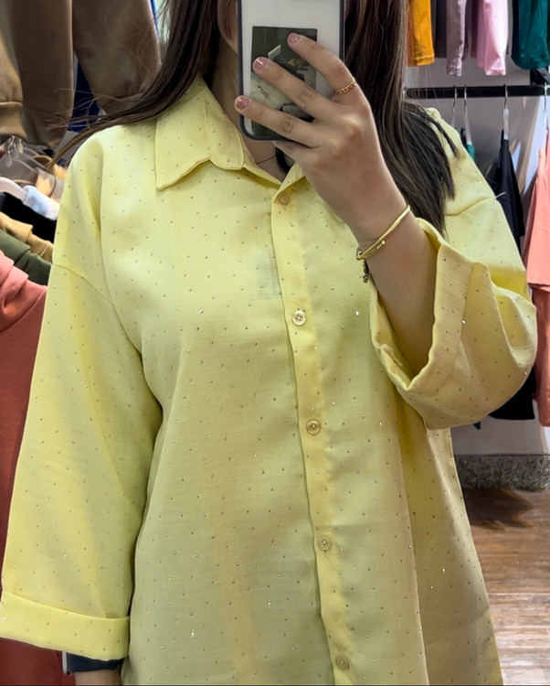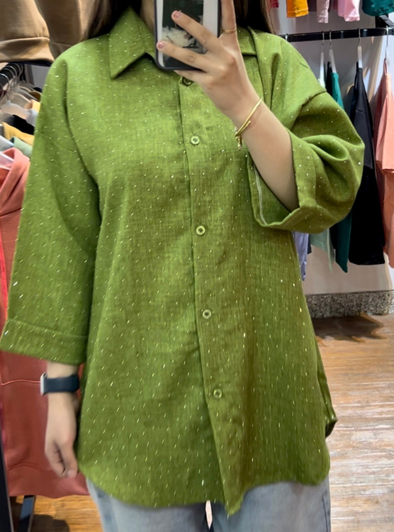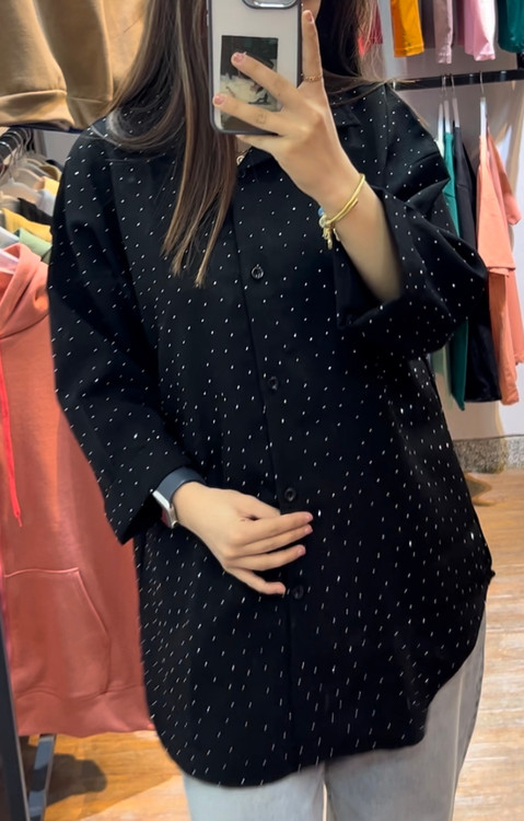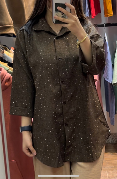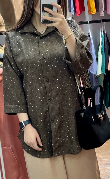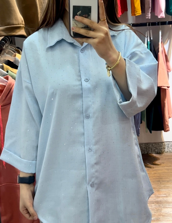 پارچهی شانتون با نگینکوبیهای ظریف باعث شده این شومیز هم برای استفاده روزمره مناسب باشه و هم برای مهمونی و دورهمی.