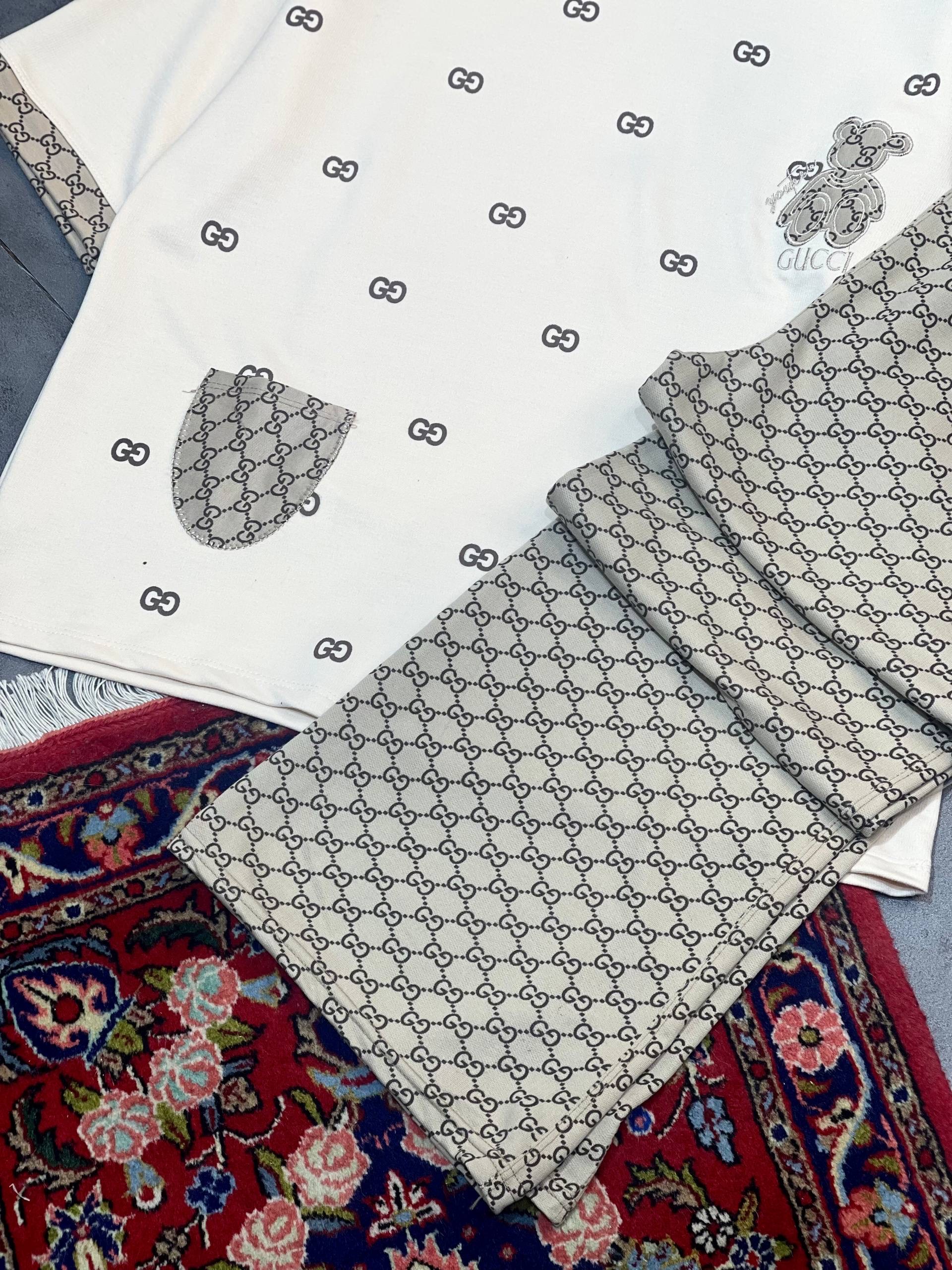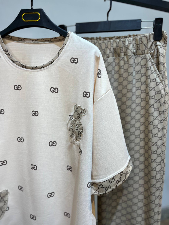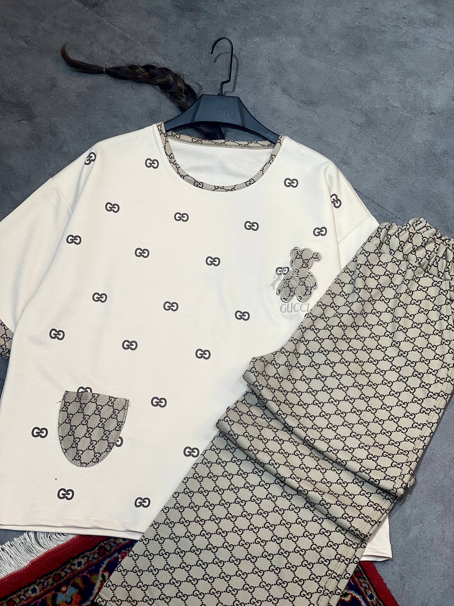 ست تیشرت آستین ۳ ربع و شلوار | طرح گوچی | قواره لانگ