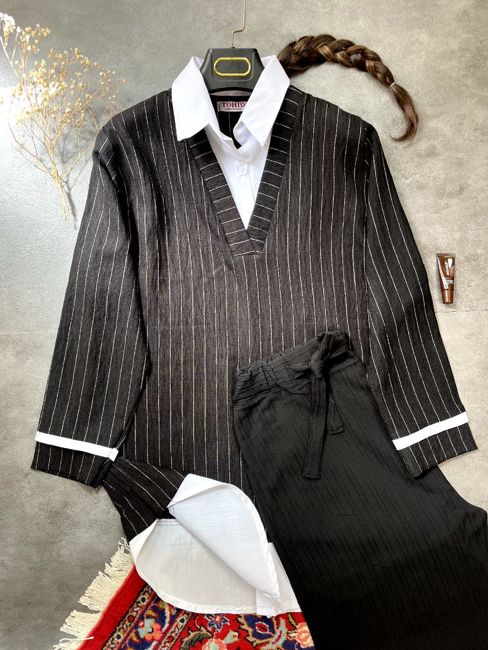 ست بافت شومیز و شلوار | فری سایز | مینیمال و کاربردی برای زیر پافر و کاپشن